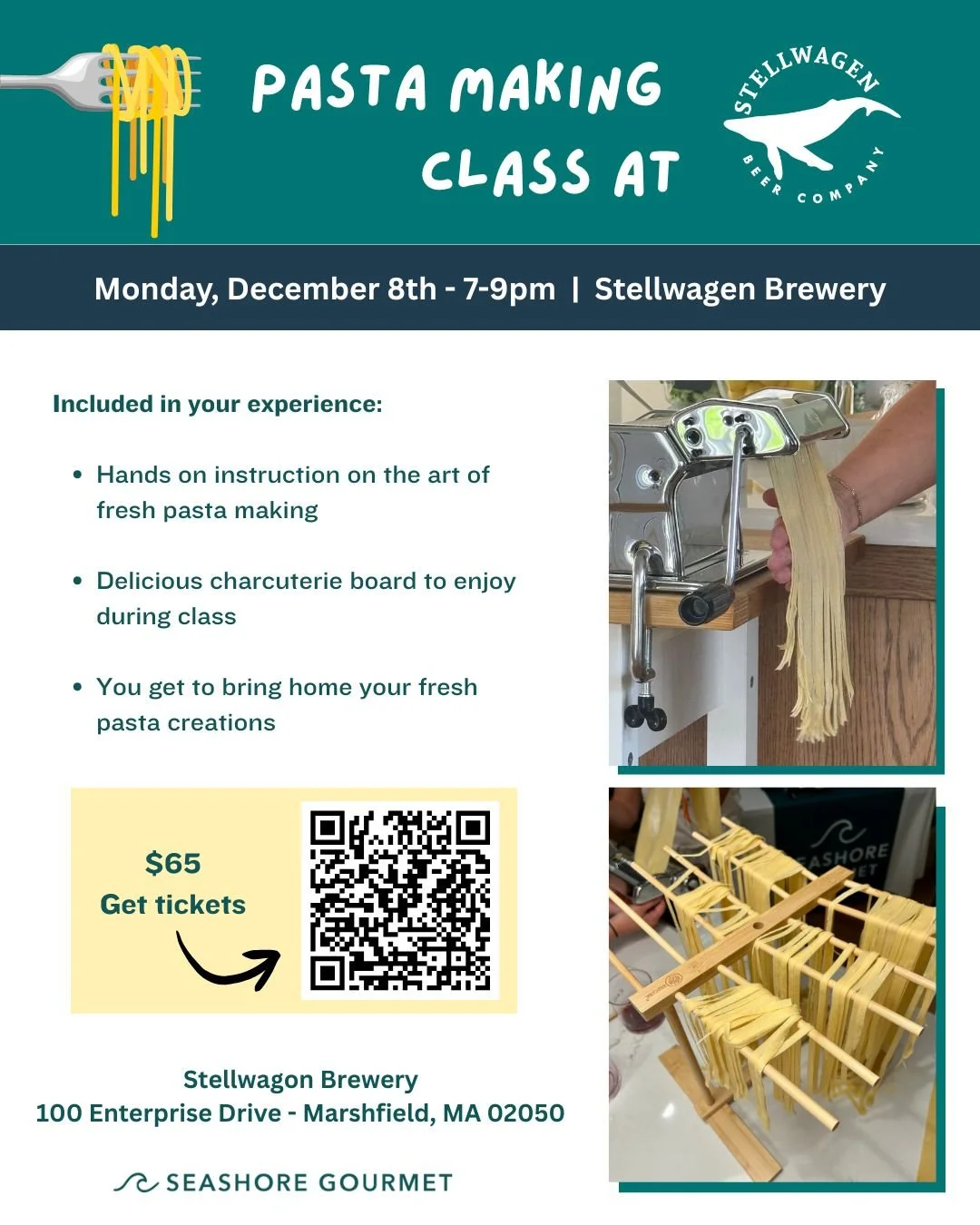 Shop classes Filled pasta making class - Thursday, March 26, 2026 (6:30-9pm) $100.00 Register > Added! Filled pasta making class - Thursday, February 26, 2026 (6:30-9pm) $100.00 Register > Added! Filled pasta making class - Friday, January 23, 2026 (6:30-9pm) $100.00 Register > Added! Egg pasta making class - Friday, March 13, 2026 (6:30-9pm) $80.00 Register > Added! Egg pasta making class - Wednesday, February 4, 2026 (6:30-9pm) $80.00 Register > Added! Egg pasta making class - Thursday, Jan 8, 2026 (6:30-9pm) $80.00 Add To Cart Added! Egg fettuccine $9.99 Add To Cart Added! Pasta making class at Stellwagon Beer Company - December 8th, 2025 $65.00 Sold Out Sold Out Added! Egg pasta making class - Tuesday, Dec 2, 2025 (6:30-9pm) $80.00 Register > Added! Filled pasta making class - Thursday, Dec 11, 2025 (6:30-9pm) $100.00 Register > Added! Seashore Gourmet Gift Certificate from $50.00 Select Value $50.00 $80.00 $100.00 $160.00 $200.00 Purchase Added!
